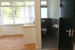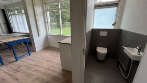 Het kantoor beschikt over een keukenblok en eigen toilet.